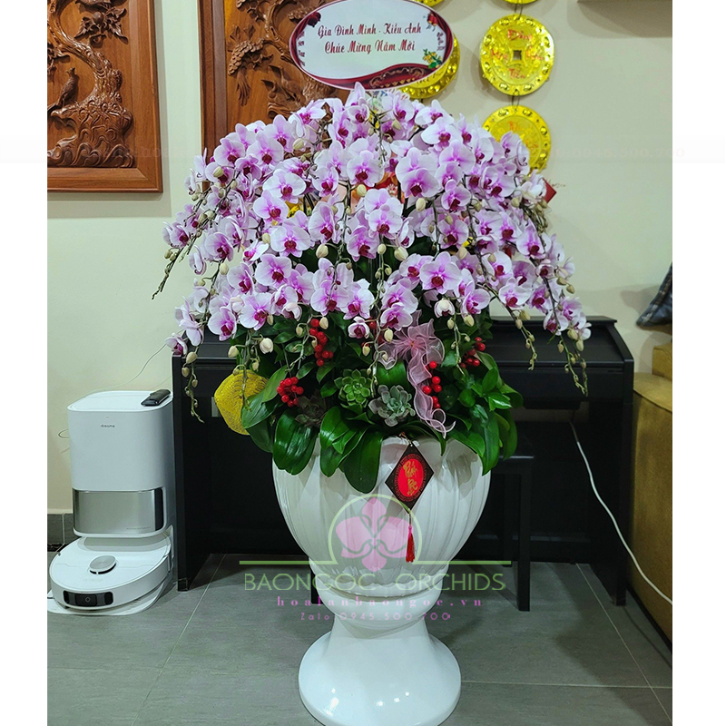 Hoa Lan Bảo Ngọc đã chọn 39 cành hoa phong lan hồng ghép chậu để khách hàng tặng chúc mừng Tết. Không phải ngẫu nhiên nhân viên ghép chậu lan hồ điệp chúng tôi chọn con số 39 cành hoa.