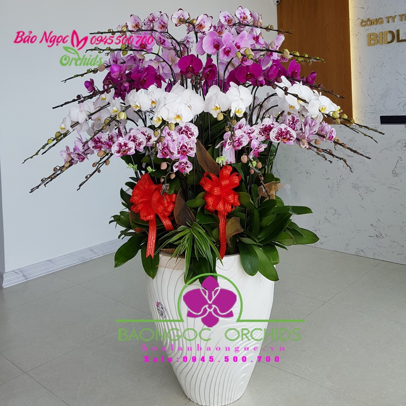 - Hoa Lan Bảo Ngọc cam kết sản phẩm thực hiện theo mẫu đã chọn với độ tương đồng khoảng 80–90%. Trường hợp cần thay đổi hoa hoặc màu sắc, chúng tôi sẽ chủ động liên hệ khách để tư vấn phương án thay thế tương đương, giá không thay đổi.