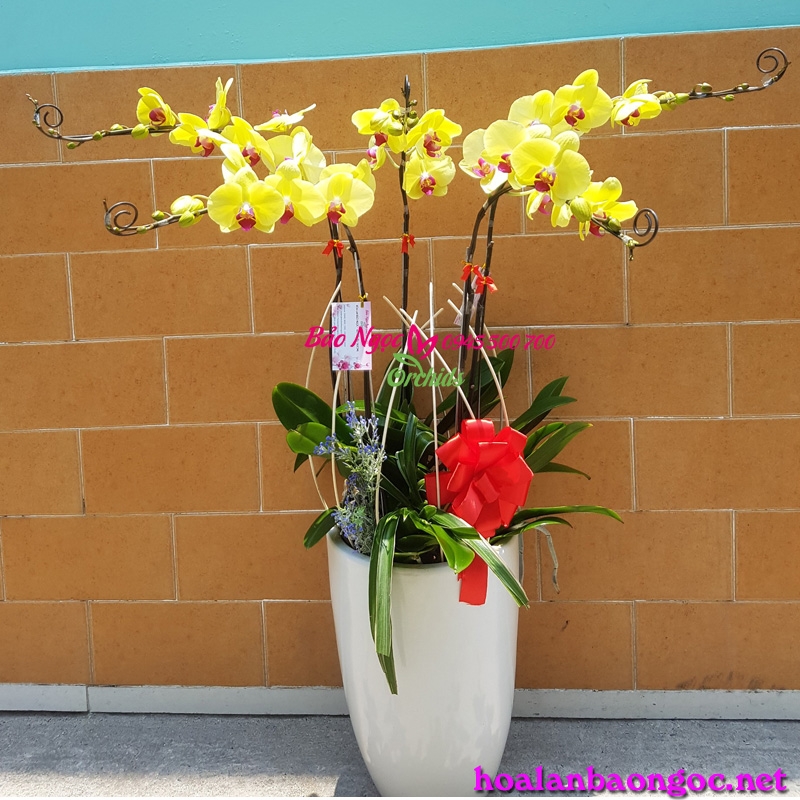 Hướng dẫn chăm sóc để hoa luôn tươiChậu lan hồ điệp vàng 5 cành, trang trí chậu sứ cao như đón ngày mới bằng những nụ cười rạng rỡ, khởi đầu tốt lành, giúp bạn có thêm năng lượng làm việc. Còn gì vui hơn khi đến văn phòng làm việc được vệ sinh sạch sẽ, gọn gàng, trang trí chậu hoa lan hồ điệp đẹp để tạo khung cảnh vui tươi, sang trọng.