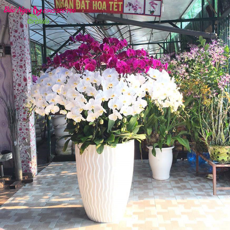 Loại hoa : Đa sắcChậu lan hồ điệp đa sắc: 30 cành được thiết kế bởi Hoa Lan Bảo Ngọc.