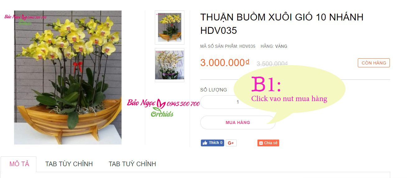 Hướng dẫn chăm sóc để hoa luôn tươiBước 1: Truy cập website hoalanbocngoc.net và lựa chọn sản phẩm cần mua để mua hàng