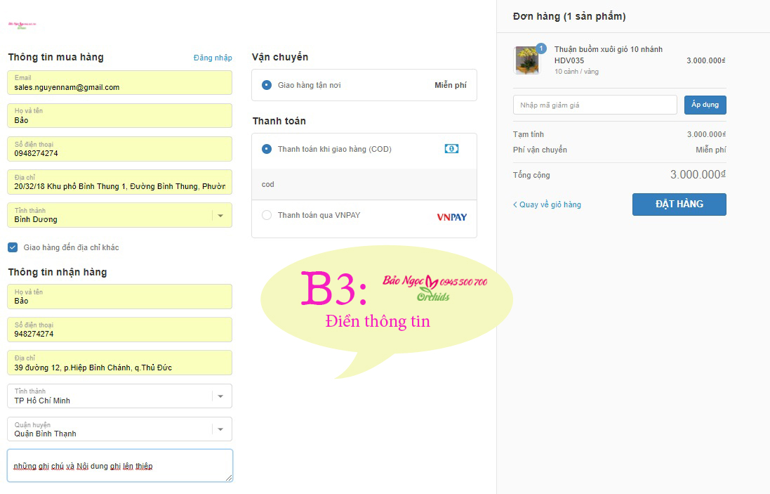 Bước 4: Điền các thông tin của bạn để nhận đơn hàng.