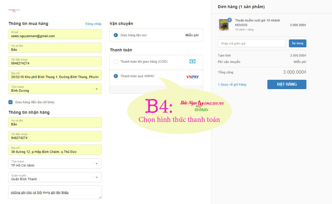 Bước 5: Lựa chọn hình thức thanh toán: