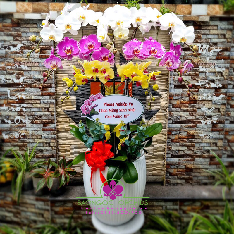 Lan hồ điệp ghép chậu nhiều màu sắc chúc mừng sinh nhật ở Dĩ An Bình Dương