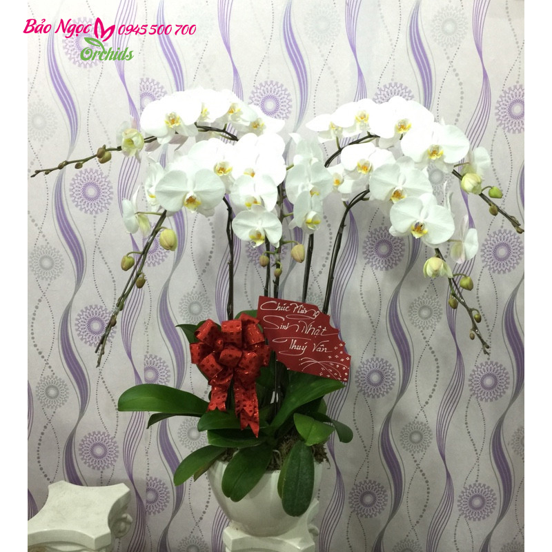 Chậu lan hồ điệp trắng 5 cành được thiết kế bởi Hoa Lan Bảo Ngọc
