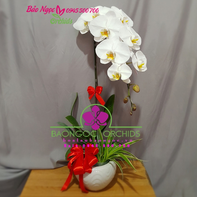 - lan hồ điệp ttắng được nhập từ Đài Loan, hoa đang nở và còn nụ, bông hoa to lâu tàn, lá xanh tốt.