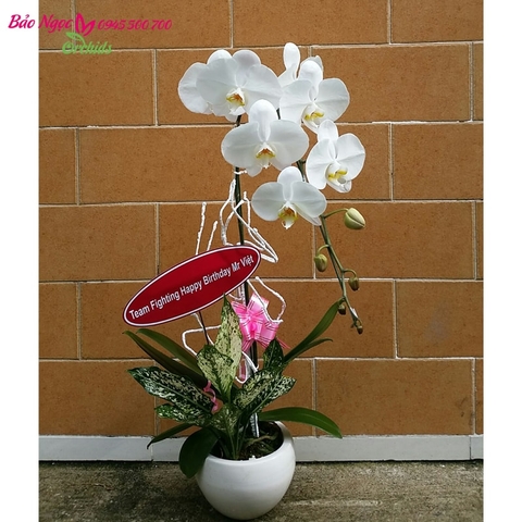 Loại hoa : trắngChậu lan hồ điệp trắng 1 cành được thiết kế bởi Hoa Lan Bảo Ngọc