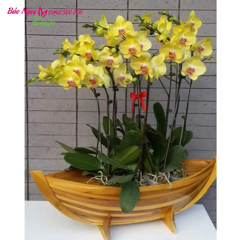 Chậu hoa gồm 10 cành hoa lan hồ điệp vàng
